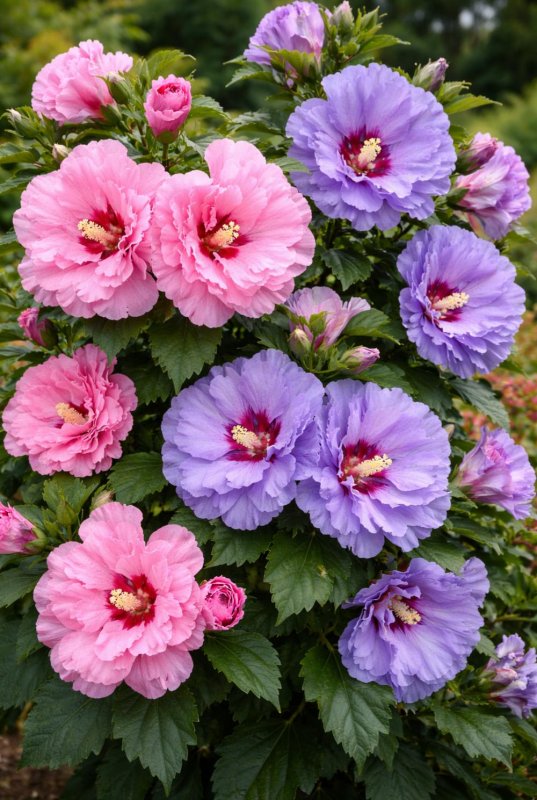 Kvitne na jednoročných výhonoch od júla až do neskorej jesene. Dorastá do výšky 180 cm. Na konci zimy je potrebné ho zastrihnúť do požadovanej formy, aby sa už od začiatku prázdnin pýšil bohatým kvetom v bielej, ružovej či fialovej farbe.